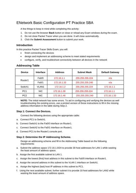 Read Online Enetwork Basic Configuration Pt Practice Sba Answers Doc